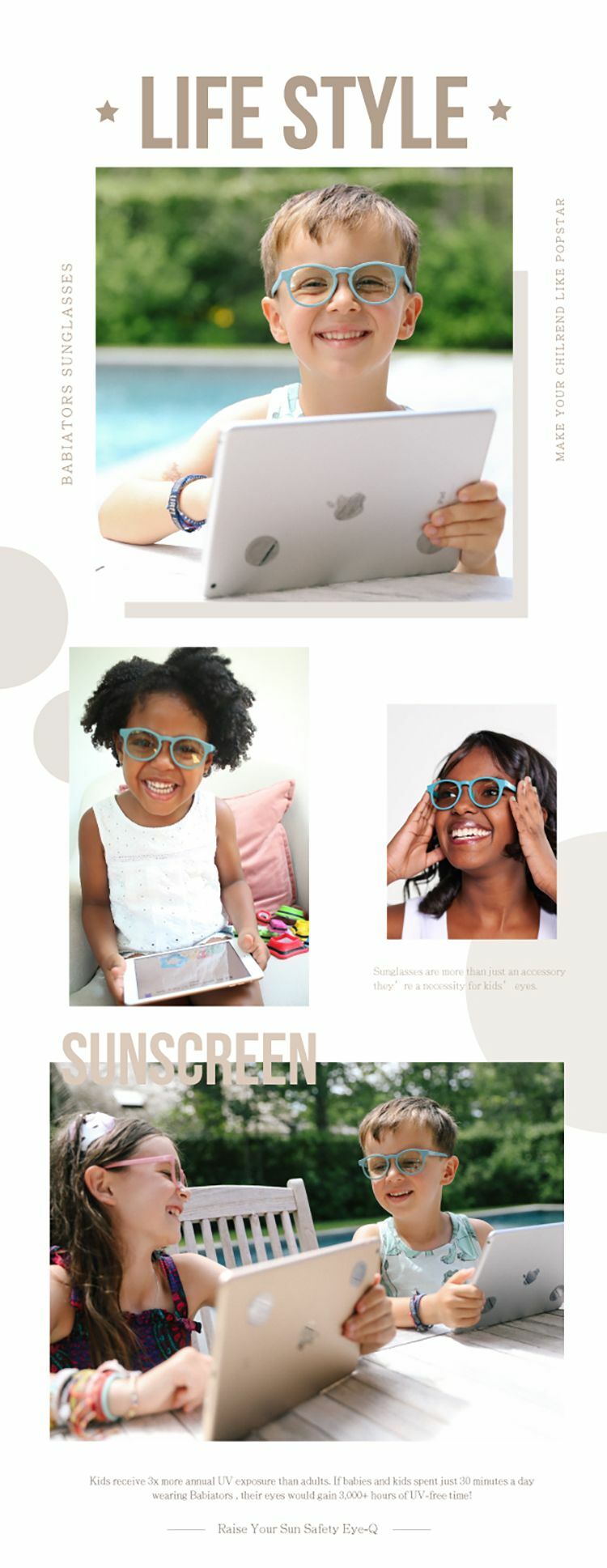・此款眼鏡0-2/3-5歲尺碼的邊框印刷為BABIATORS LOGO,6歲尺碼的太陽眼鏡兩側邊框印刷為BABIATORS寶寶頭像。