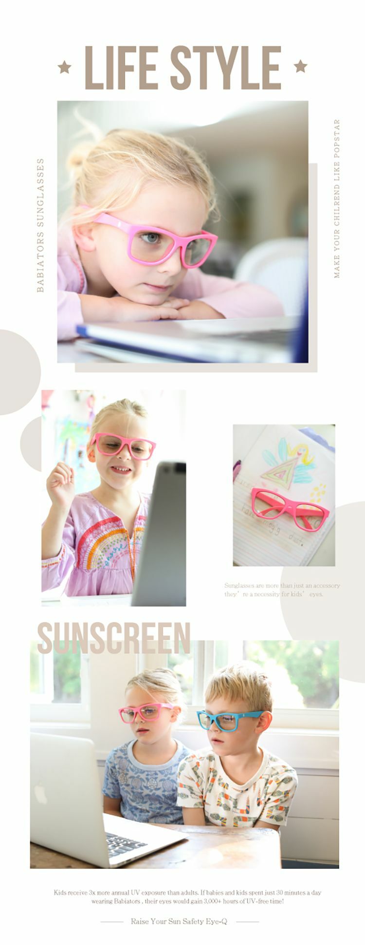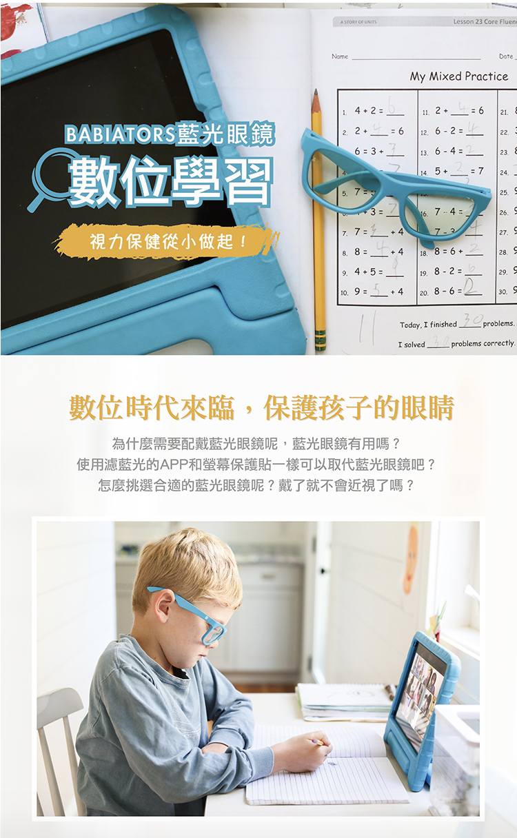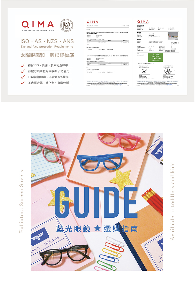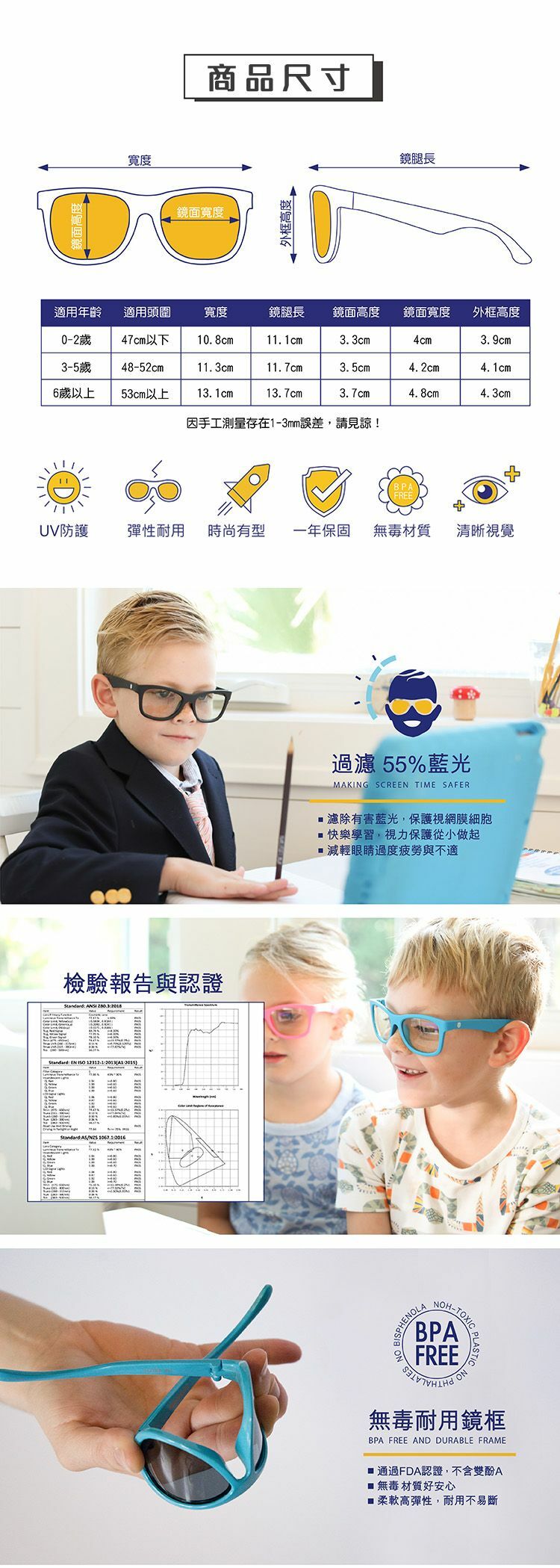 ・此款眼鏡0-2/3-5歲尺碼的邊框印刷為BABIATORS LOGO,6歲尺碼的太陽眼鏡兩側邊框印刷為BABIATORS寶寶頭像。