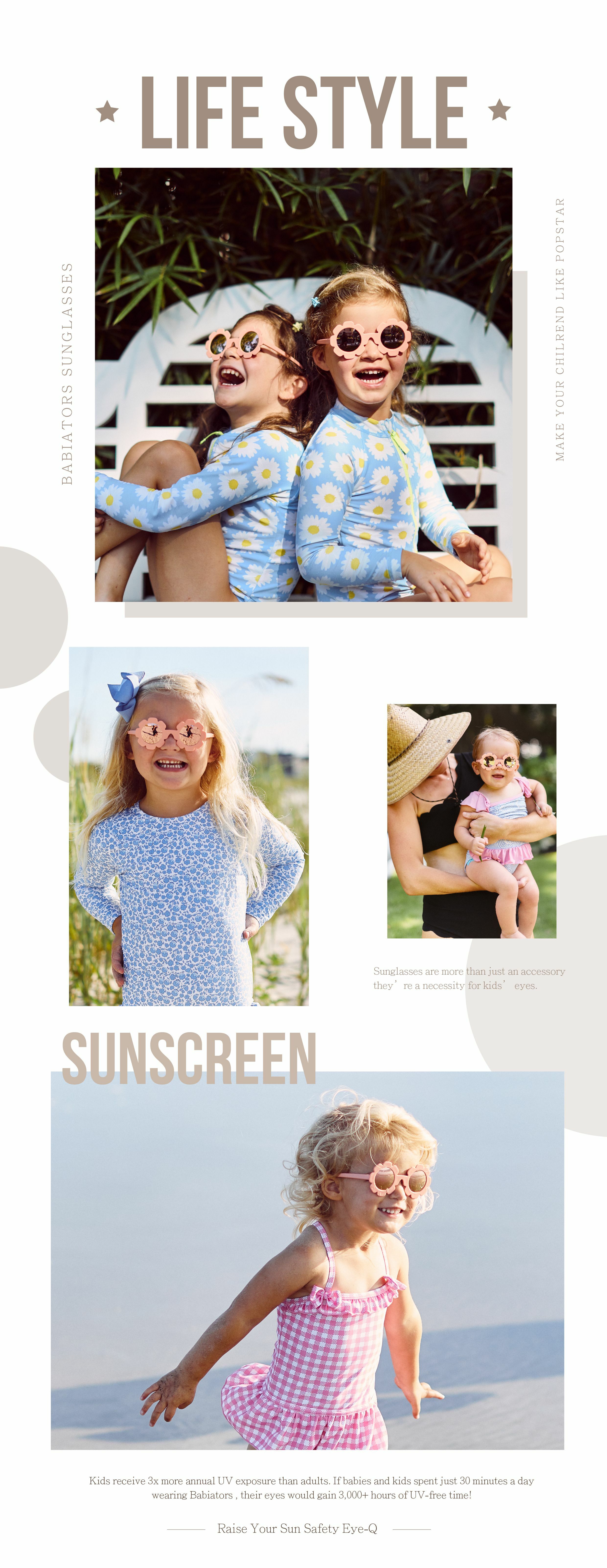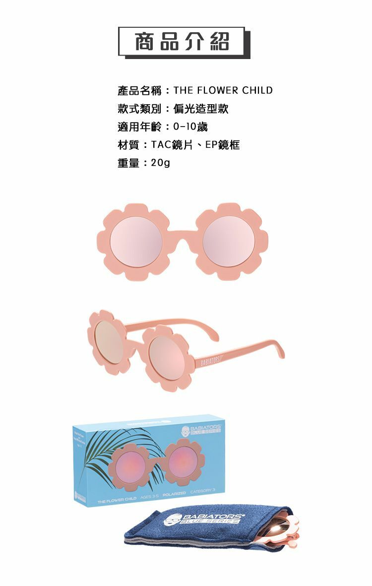 ・此款眼鏡0-2/3-5歲尺碼的邊框印刷為BABIATORS LOGO,6歲尺碼的太陽眼鏡兩側邊框印刷為BABIATORS寶寶頭像。