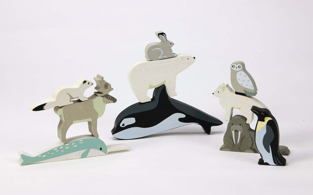 我們瀕臨滅絕的動物來自兩個冰凍的兩極。展示在一個擱架單元中,實木動物 - 逆戟鯨、獨角鯨、雪兔、北極狐、王企鵝、貓頭鷹、白鼬、海象、麋鹿,當然還有北極熊。